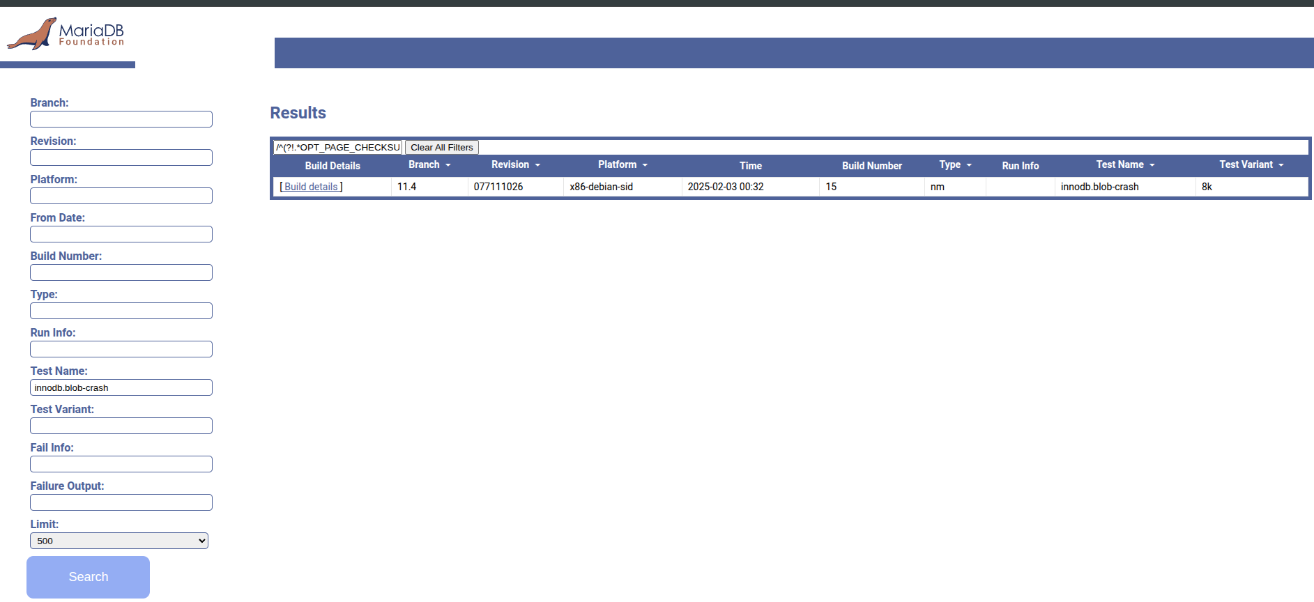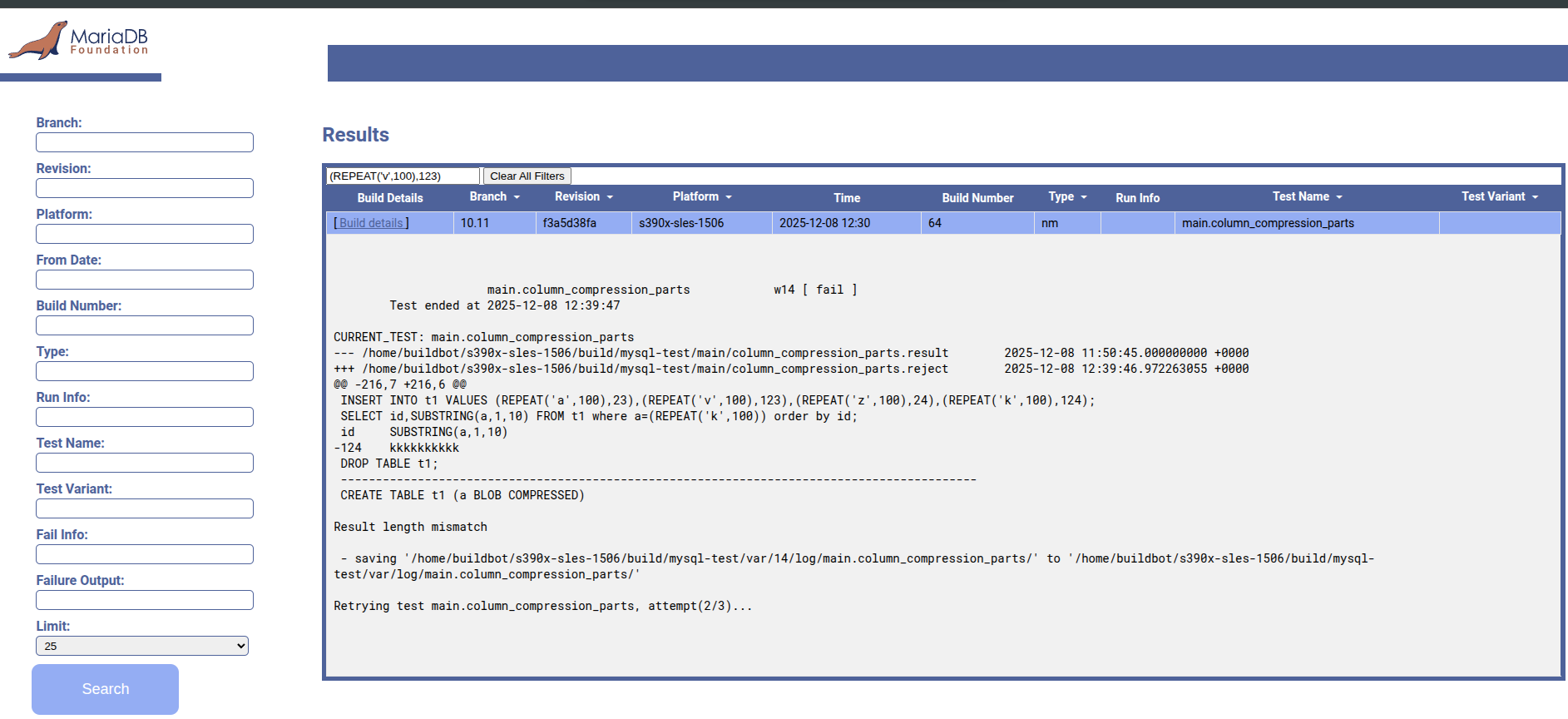 Changes are available at: https://buildbot.dev.mariadb.org/cr