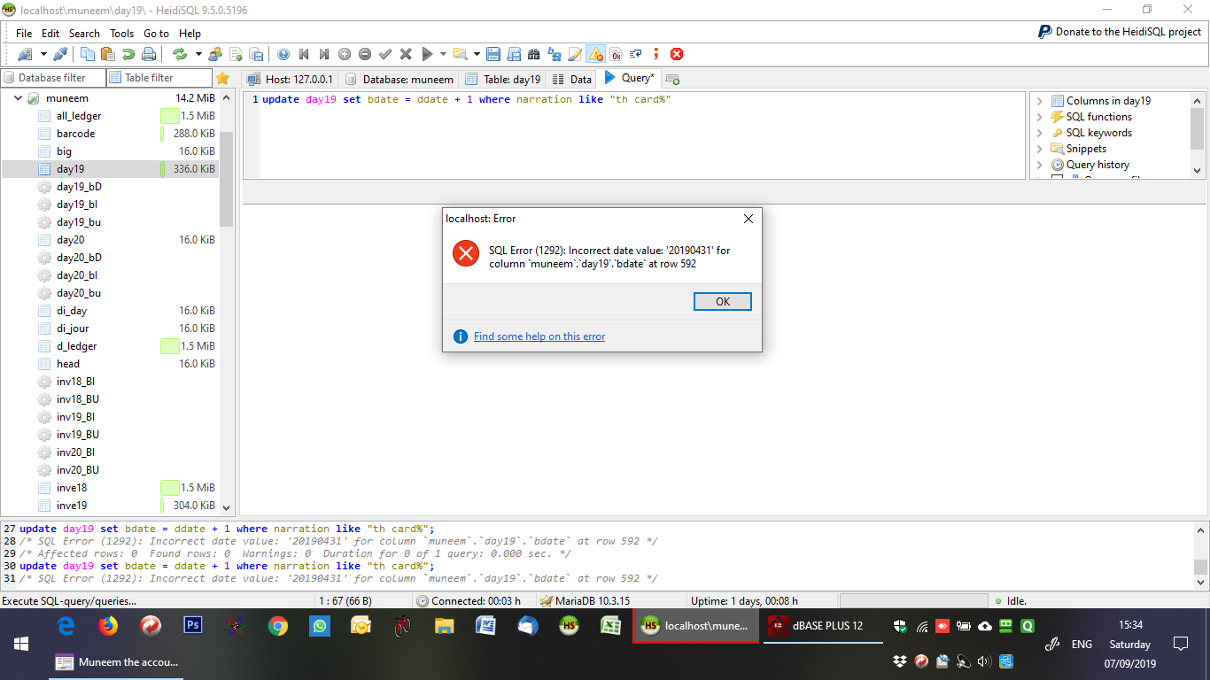 I altered the date of the row giving error using sql manager but the error shifted to 31st May.