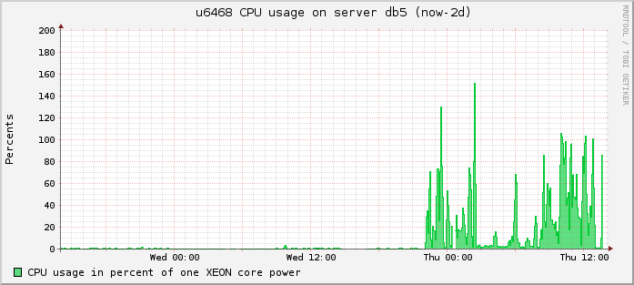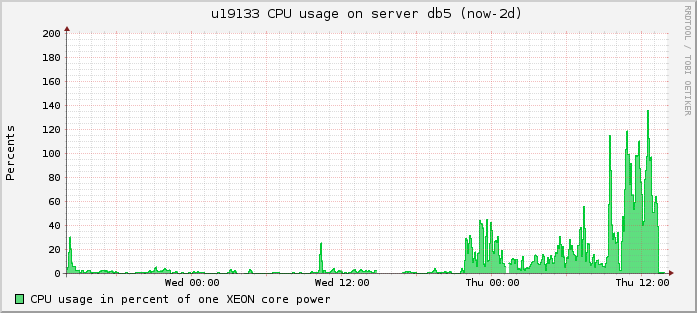 Yesterday we tried to migrate from MariaDB 5.2 to 5.3 on one of our servers. We have noticed very huge growth of CPU usage by mysqld processes. The following are 2 pictures showing what happened. Upgrade has been done at about 22:00, used default optimizer_switch settings.