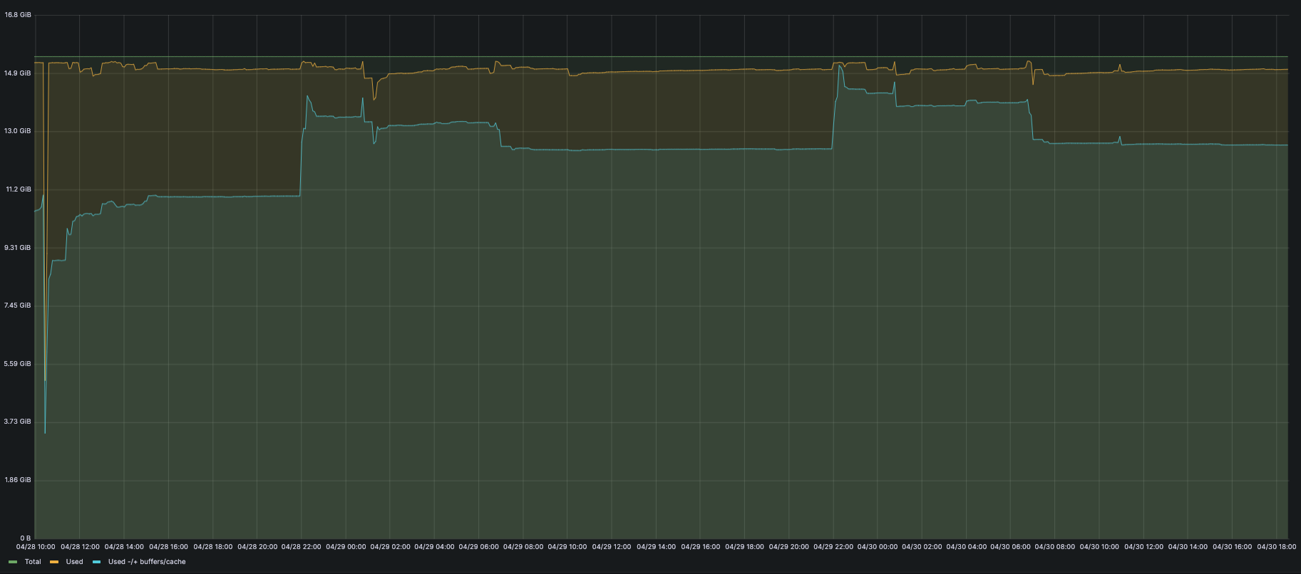 [OK] Maximum reached memory usage: 6.8G (44.24% of installed RAM)