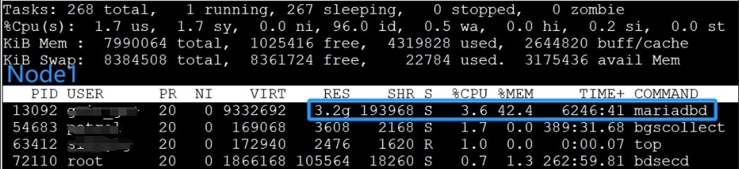 Node 1 process and loading heavy than node2, but node2 memory usage high 44% than node1, i want to know the reason? thanks