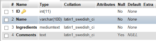 I've included screenshots of the table structure from MariaDB and MySQL.
