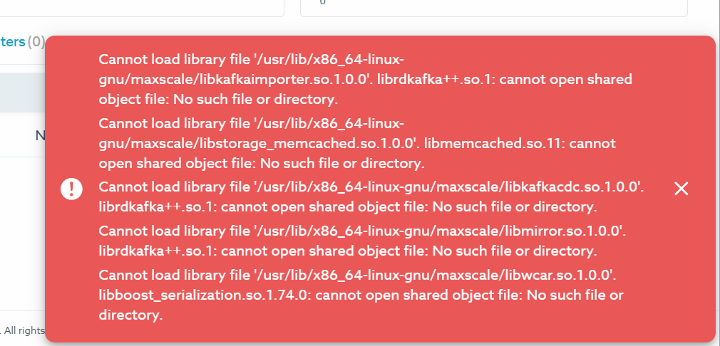 Cannot load library file '/usr/lib/x86_64-linux-gnu/maxscale/libkafkacdc.so.1.0.0'. librdkafka++.so.1: cannot open shared object file: No such file or directory.