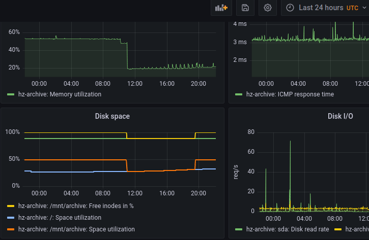 As far as I can tell so far it dropped a mount of /mnt/archive and at some point it came back. I'll keep an eye on it today and ask our sysadmin to look closer at the cause. | |||||||