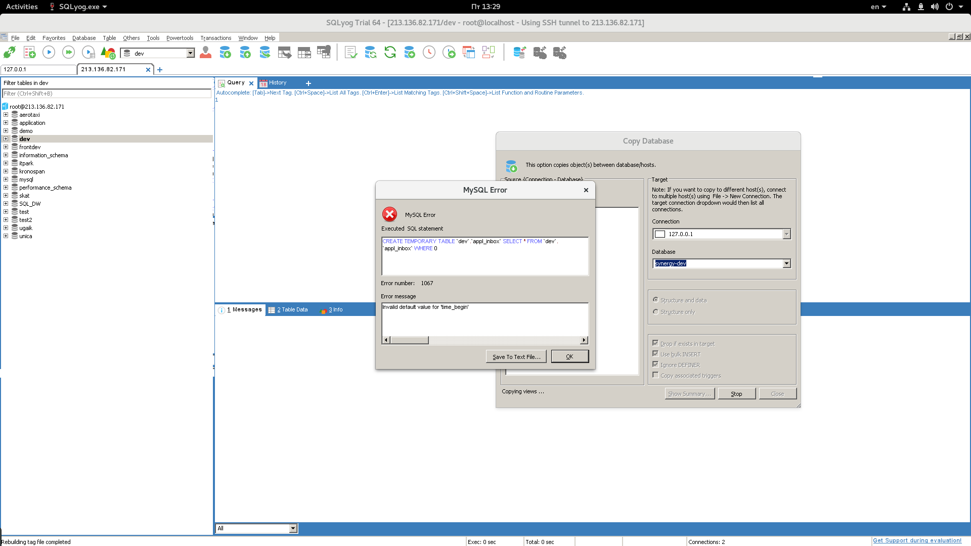 [MDEV-10935] got error 'Invalid default value for timestamp column' when trying create copy table structure from view Created: 2016-10-01 Updated: 2016-11-18 Resolved: 2016-10-03 |