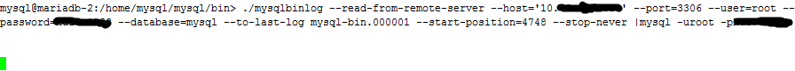 But the problem is that the events will be applied by the `mysql` command with binlogging enabled, which will loop around and endlessly stream events through mysqlbinlog (or rather, until a duplicate GTID or row error stops it); in any case it doesn't reliably test the missing fflush() reliably. So this should also be fixed. I think can be fixed with something like this: