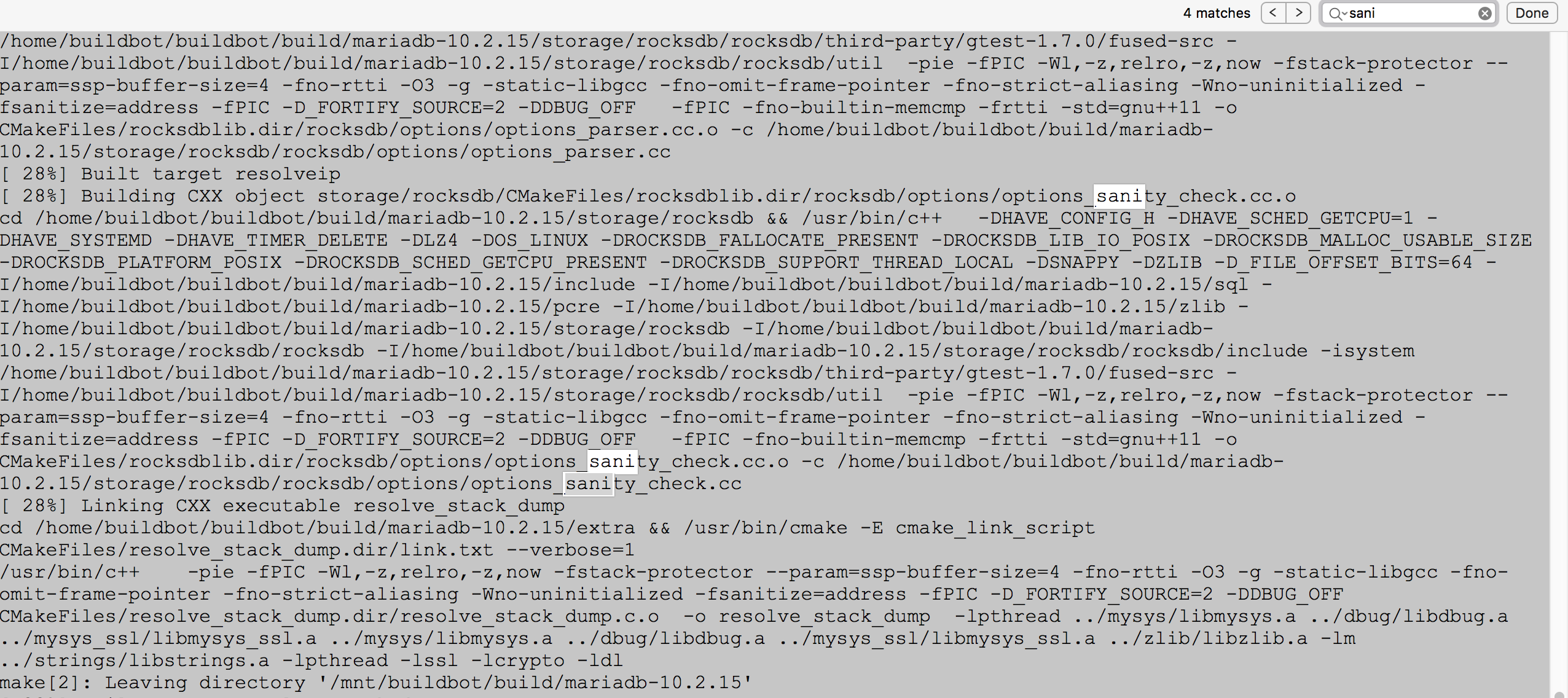 strange, I think I can see -fsanitize=address in the log that you linked to above. | ||||||||||||||||||||||||||||||||||