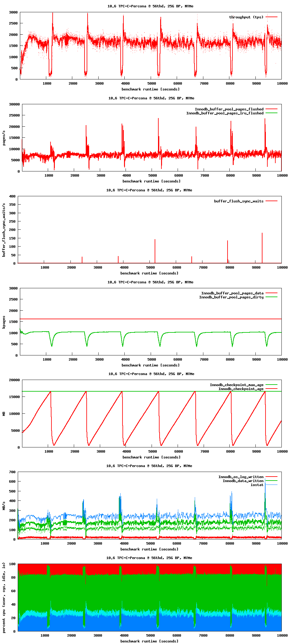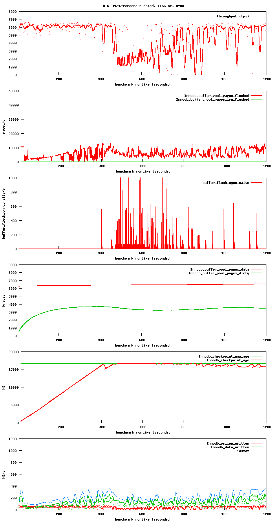 I also collected graphs for the same workload and much smaller buffer pool and bit higher IO capacity: