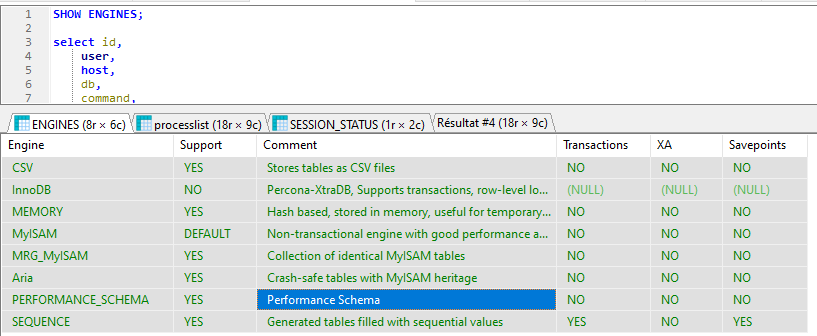 Bonjour, Par contre, nous avons démarré un projet de reporting basé sous powerbi. Voici l'une des requêtes, qui prend environ 10 min, 1vCPU et environ 4Go de RAM avant de retourner aucune données: J'ai montée une autre instance en 10.1.34 avec seulement la base qui m'intéressait, et dans cette configuration, le requêtage est instantané. Est ce que c'est un bug? un problème de configuration? un problème d'architecture de base ? Merci pour votre aide! JM |