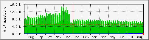 As you can see, the load on the machine changes by mid of june. This is the time when the new release was installed: While the workload by queries is "constant": There was no change in the webapps using the database. |