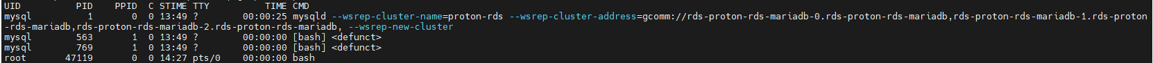 A mariadb galera cluster with 3 nodes, After sst, some zombie process were left. |