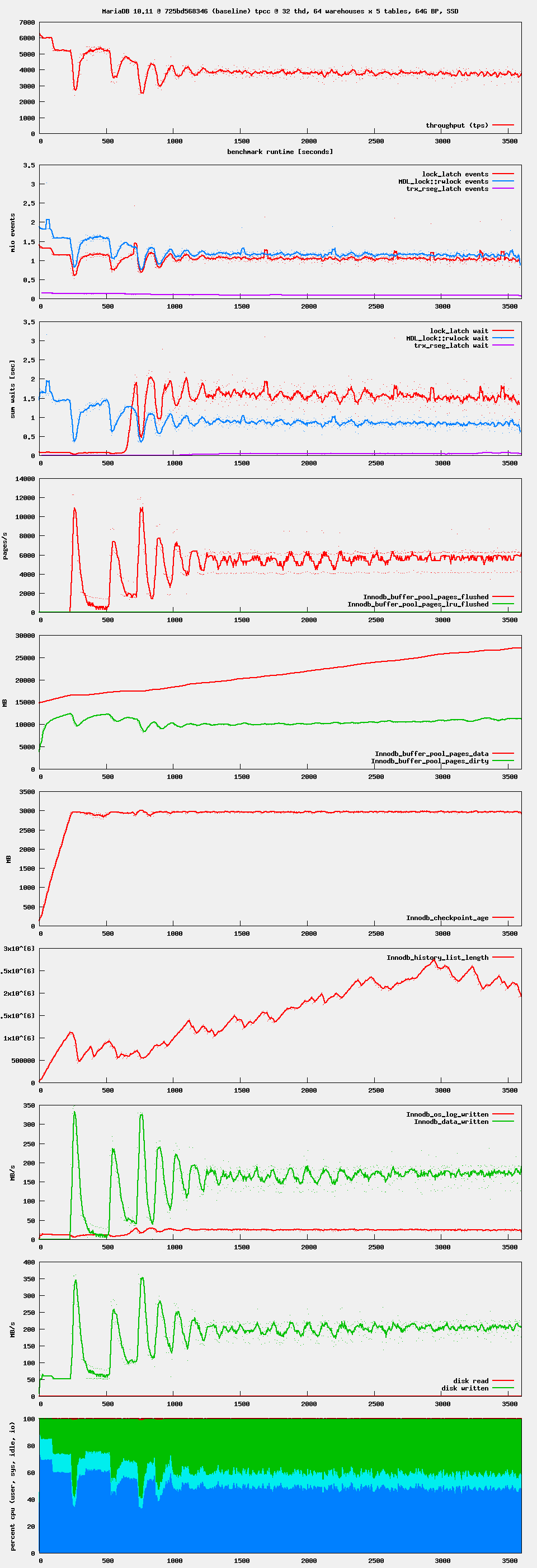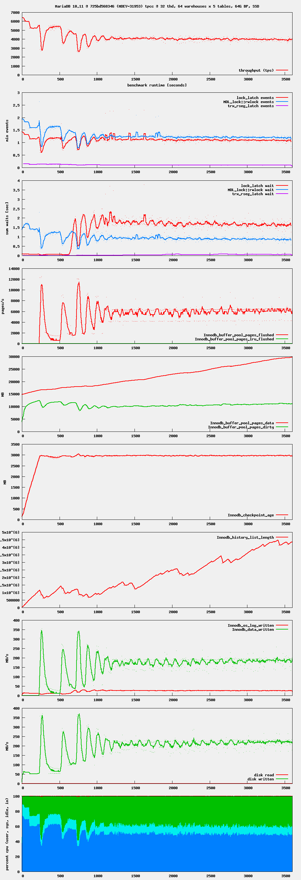 So it was faster with the patch in any case. The UNDO log growth was not affected by this patch, nor was the general "jumpiness" of the troughput-over-time. For another workload, INSERT w/ AUTOCOMMIT the patch showed no effect. | ||||||||||||||||||