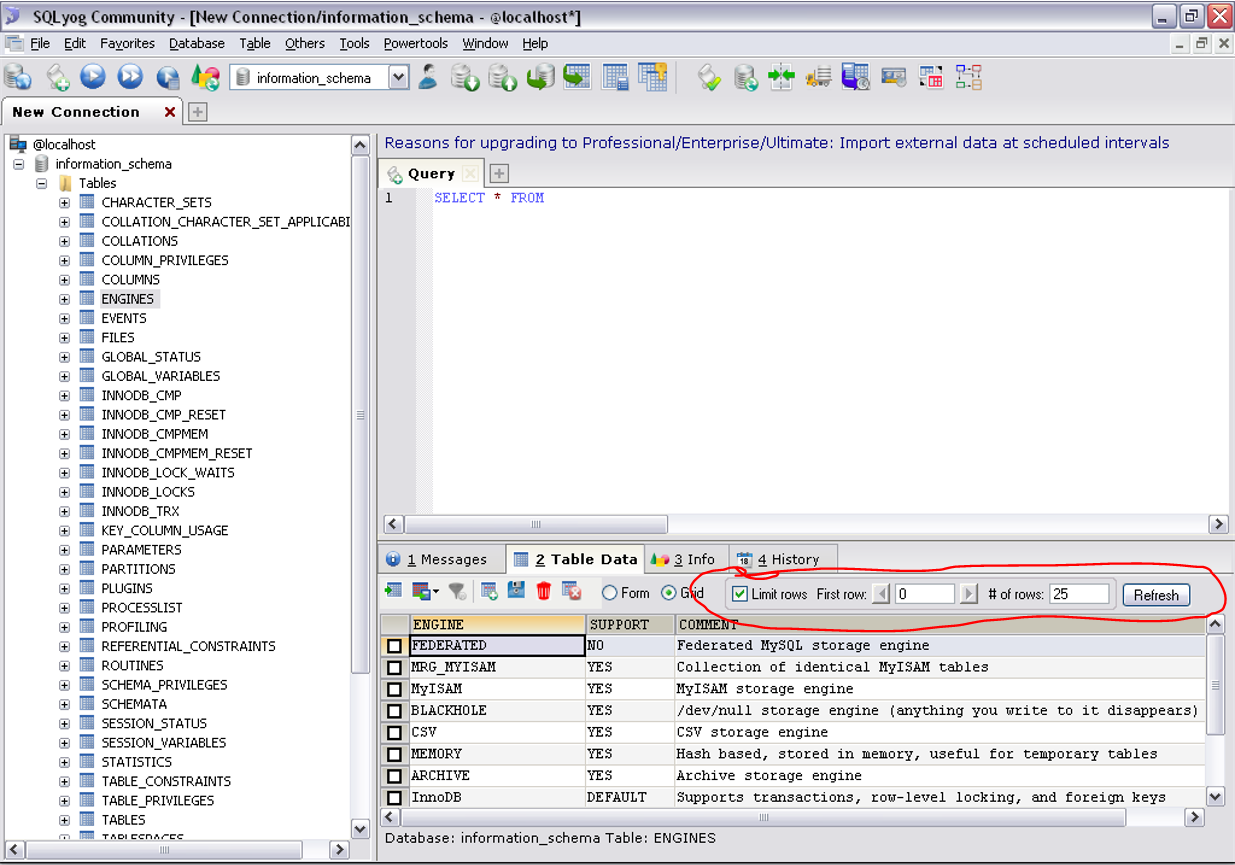 Hi Duong, Thanks for the update. Yes, it would be good if we can remove and also provide range/pagination option if possible. and one more thing the limit rows option, you may provide separately instead of removing permanently it like SQL yog. | |