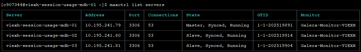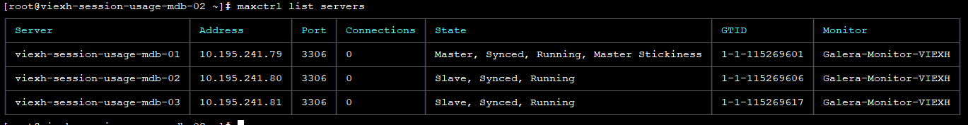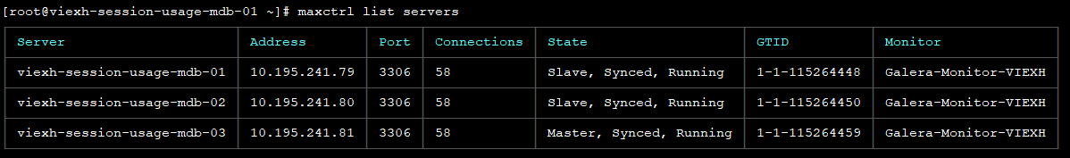 The fact that disable_master_failback goes agains what root_node_as_master tries to accomplish is not documented and the two parameters can be used together without any warnings. Original title: Maxscale | Multiple instances in a cluster go out of sync. Original description: We have multiple instances of Maxscale running in the same DB cluster. Occasionally the maxctrl administrative client reports an inconsistency in states amongst the nodes, e.g. Maxscale #1 reports server #1 as the Master, while Maxscale #2 & #3 reports server #2 as Master etc... . Could you suggest the steps to correct these inconsistencies? Thanks. |